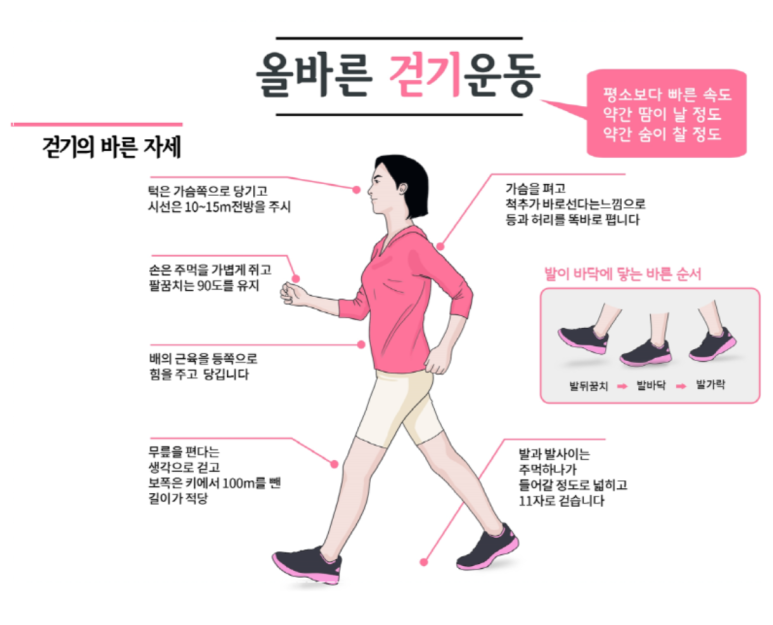 - 팔의 자연스러운 움직임: 걷는 동안 팔을 자연스럽게 흔들어 몸의 균형을 맞추는 것도 중요합니다.